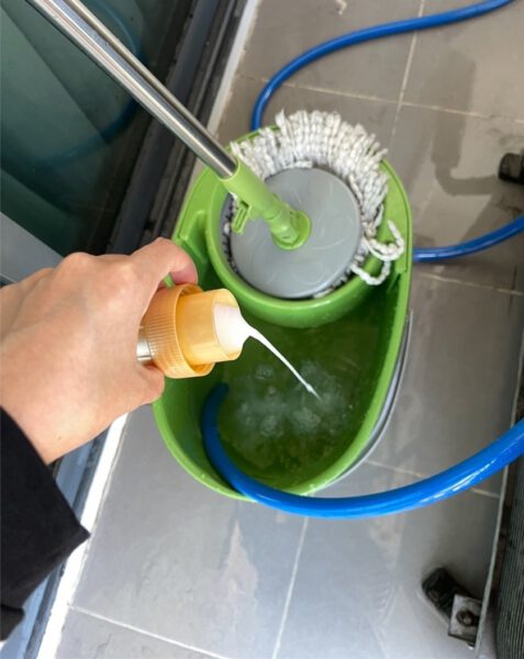 เมื่อครบวันที่ห มั กไว้ก็ให้นำน้ำส่ ว นปร ะก อ บที่ได้ 3-5 ช้อนโต๊ะมาผสมกับน้ำที่สะอาดครึ่งถัง เพื่อนำไปถูพื้นบ้ านฝุ่นจะหลุดออ กหมด อีกทั้งยังได้ก ลิ่ นหอ มของมะกรูดด้วยนะ